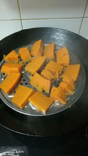 南瓜去皮切块,放蒸锅内隔水蒸熟