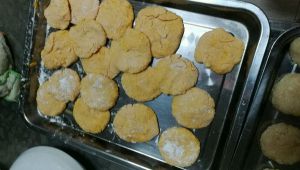 锅内倒油烧热,改小火,将南瓜饼放入锅内,两面煎至金黄即可