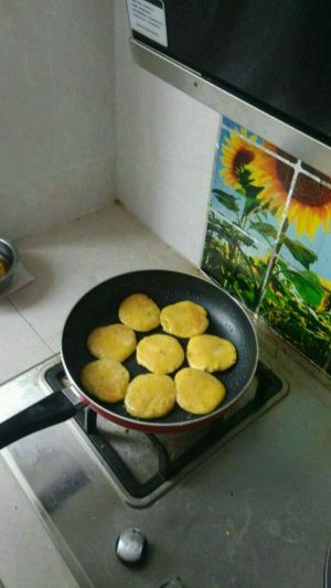 南瓜隔水蒸熟,降温后弄成糊,跟糯米粉,白砂糖(根据口味调)混合一块,然后拍成小饼的样子
