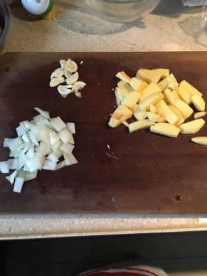 土豆洗净切块,番茄洗净切好,备好(注意,为了避免番茄煮成番茄酱,所以番茄皮不用去掉)