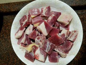 牛腩切块洗干净,开水烫一下,撇净血沫。
