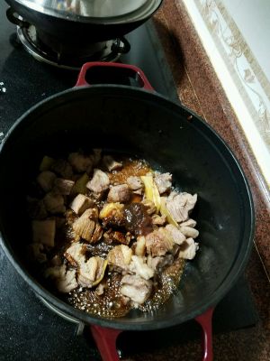 锅中倒入适量油,下冰糖炒化,不用出糖色