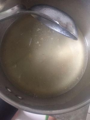 第三步,把排骨汤成出来一些,备用。剩下锅里的就可以倒掉了。