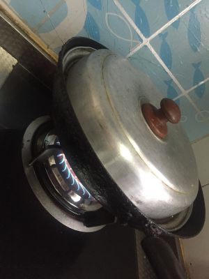 这里面的是水不是油,开小火用水化开冰糖,你也可以事先用热水把冰糖化开