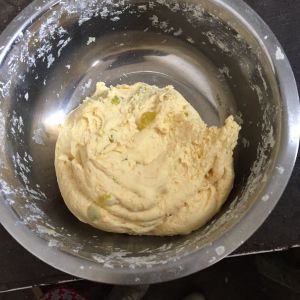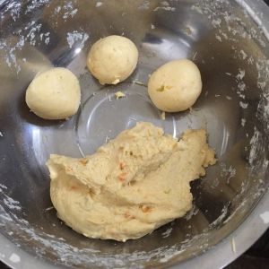 糯米粉和南瓜以及白糖混在一起,揉成面团
