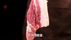 前夹肉适量,用刀将肥瘦分开,瘦肉部分切成肉片装入碗中,加入适量的盐、老抽和水,用手抓均抓粘后备用,肥肉部分切成薄片备用;