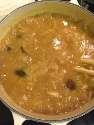 放入咖哩块儿小火慢慢搅拌,这个过程尝一下咸淡,可根据各人口味放咖哩块儿
