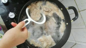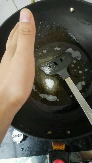 炒糖色,锅中放油,油六成热放入白糖小火炒至浮起沫