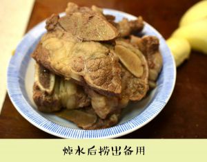 牛肋骨切大块,冷水下锅,焯水后捞出备用