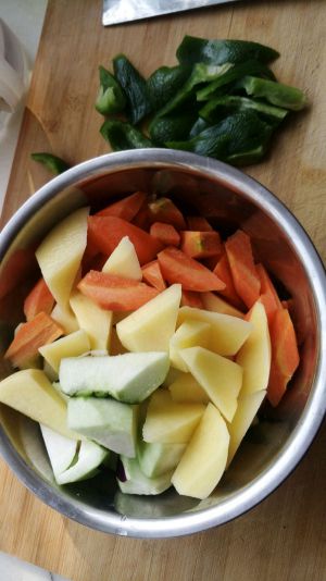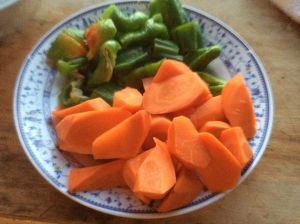 青椒洗净切块。我比较爱吃辣,所以选的这种杭椒。也可用普通青椒。
