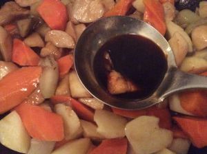 加入酱油,醋,糖,盐,淀粉,水搅拌一下