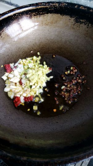 炒锅放底油,放入葱姜蒜辣椒花椒