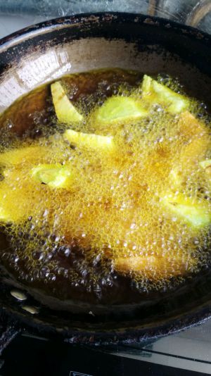 土豆块煎熟,颜色变为金黄色即可捞出。