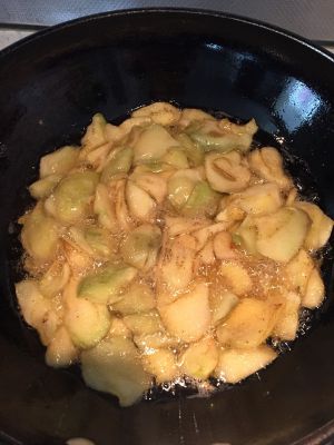 土豆、茄子分别过油炸(炸到剩余水分比较少)