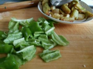 11.土豆,茄子,青椒分别入锅油炸,捞出