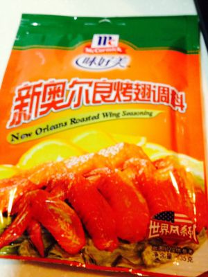 倒入奥尔良烤翅粉适量,戴一次性手套把鸡翅和粉料抓匀,保鲜膜封口后冰箱冷藏24隔夜。我冷藏了24小时。