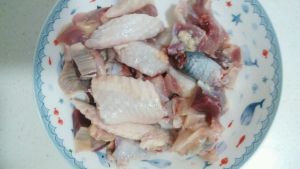 把鸡腿肉和鸡翅膀砍成小件!爱吃鸡肝的也可以放下去,好吃的!