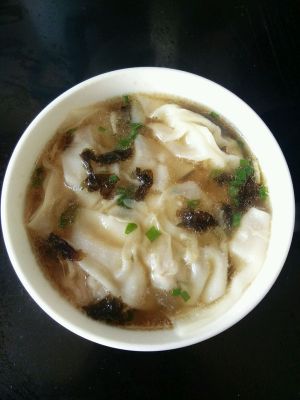 煮好的馄饨捞出来在碗里,撒一点小葱末,淋几滴麻油,好吃好看的磷虾鲜肉馄饨就做好了。开吃吧。