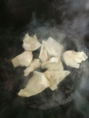 汤锅加水烧开,放入馄饨煮熟,大约煮两分钟,等到馄饨全部飘起来,身体变胖就是煮好了。