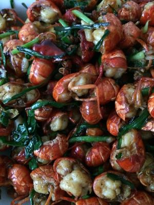 加入洗好的小龙虾翻炒,记得用锅盖压好哦,不然小龙虾就爬出来了。这一步很残忍!