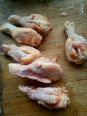 鸡翅解冻,我用的是鸡翅根,家里刚好有,每个上面切两刀,方便入味