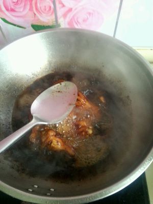 倒入可乐 大火煮开 盖上盖子中火焖七八分钟 打开锅盖 大火收汁