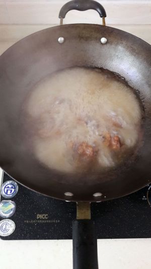 锅里放少量油,加入一颗八角,出香味后放入鸡翅,翻炒至微黄