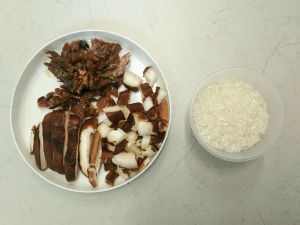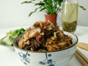 1.香菇洗净切丁,切片;豆豉鱼扯成丁条,大米一量杯洗净。