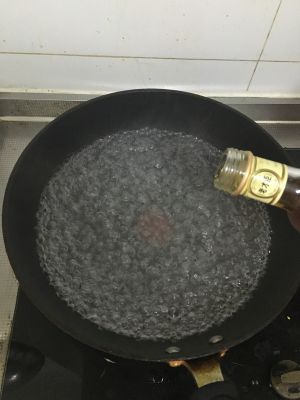 锅里加水,烧来,加入料酒,鸡翅,焯三到五分钟,捞出沥干水份,备用