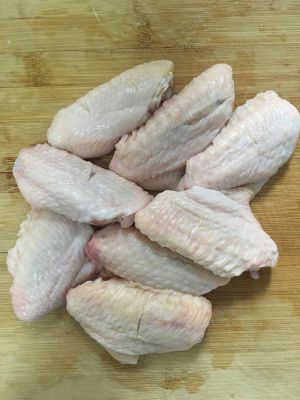 用温水把鸡翅洗净,水沥干,再用小刀口把鸡翅背面滑两道小口好入味,不能太大容易烂