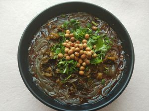 撒上老坛酸菜碎、香菜碎和酥黄豆拌匀即可食用!