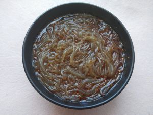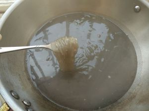 锅中烧开水,下入红薯粉丝煮5分钟左右关火;