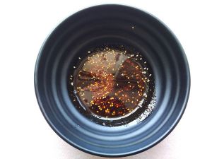 取一只大碗,调入辣椒油、香油、花椒粉、陈醋、生抽、盐、糖待用;