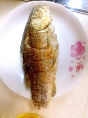 鲫鱼一条收拾干净,控干水,下锅前用厨房纸巾擦去鱼身的水