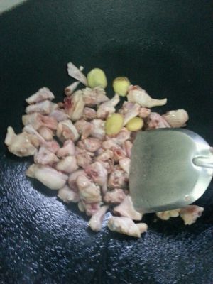 倒入半勺盐,矿泉水一瓶盖多的酱油。翻吵!