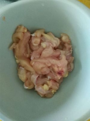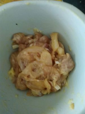 加入适量盐,一勺生抽,一勺料酒,蛋清,淀粉抓匀