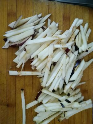 茄子切长条 能吃多少准备多少 主张不浪费 我们人少所以就一个茄子都吃不完