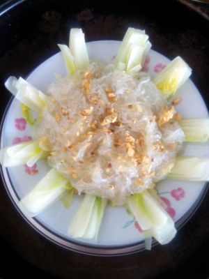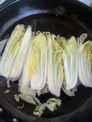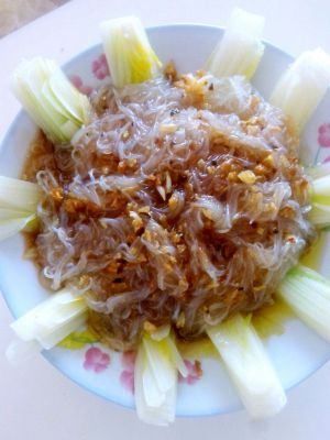 粉丝煮软后放在之前摆好的娃娃菜上,把蒜沫油全浇在上面,放在锅里蒸,大概5分钟。