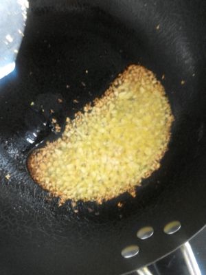 倒入一小碗油,油温后倒入蒜沫,翻炒至金黄。