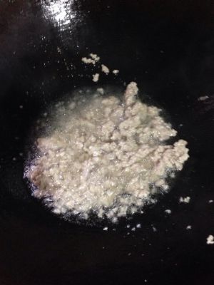 瘦肉切成肉末,锅烧热放油,炒熟。