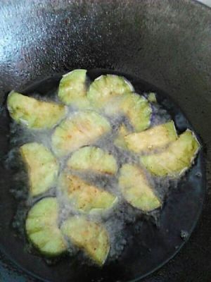 把茄子放入油中将其炸成金黄色捞出即可;