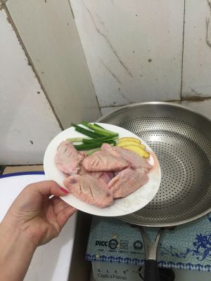 烧一锅水,水开后把中翅、姜片、葱一起倒入锅中