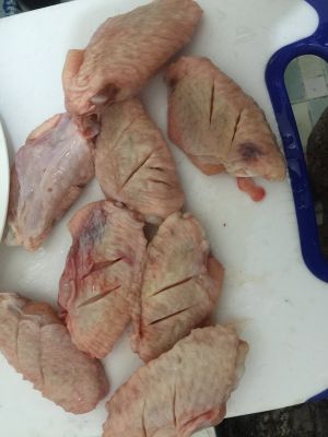我们是两个大人,所以买了8个中翅。中翅洗净划上两刀,