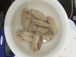 把鸡翅解冻后,放入沸水煮熟