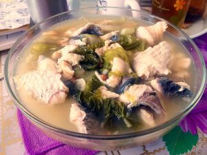 水开后,加鸡精和盐,可以适当加点白醋,调好味,加入鱼骨,煮两分钟,把全部捞起盘里,再将鱼片倒入剩下的鱼汤里,当鱼片变色脱生,马上停火,全部倒入盘里!