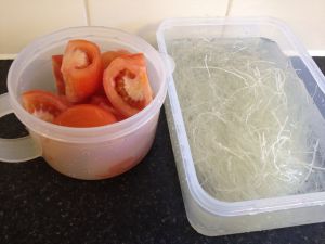 番茄切四瓣,其实应该去皮但是我很懒没做。粉丝泡发待用。