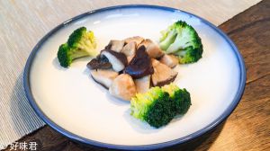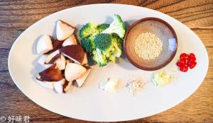 蘑菇焯盐水后过凉攥干水分,西兰花焯盐水,锅内放油5ml放入蒜片煸香后放入蘑菇煸炒,调底味后放在盘子中间,西兰花放在四周。