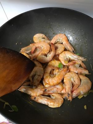 翻炒两分出锅,时间太长虾肉会变老,失去弹性,口感不好