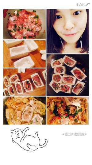 热锅放油,先煎有肉沬的那一面,约二分钟后再煎一面,用小碗放酱油,鸡粉,太白粉,水调匀淋在豆腐上,出锅时撒上葱花就可以了。