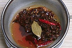 用细眼筛子蔽出香料和辣酱残渣。(这些可以留着卤东西用不要扔掉)